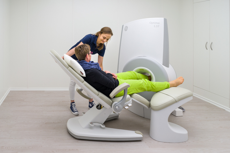 Hinweis: Während der Untersuchung werden Sie auf einer Liege in die Öffnung des Magneten gefahren. Unser neuestes Gerät ist mit einer größeren Öffnung ausgestattet, so dass für unsere Patienten, die unter Klaustrophobie (Platzangst) leiden, die Untersuchung weniger belastend ist. Bestehen trotzdem Ängste, verabreichen wir Ihnen auf Wunsch ein Beruhigungsmittel. Sie stehen während der gesamten Untersuchung unter Beobachtung und in Kontakt zu unserem Fachpersonal. Da während der Aufnahme ein sehr lautes Klopfgeräusch ertönt, erhalten Sie für die Dauer der Untersuchung einen Hörschutz. Die Aufnahmedauer ist von der Größe der untersuchten Körperregion abhängig, dauert in der Regel aber nur 10 bis 15 Minuten. Besonders bei der Magnetresonanztomographie ist zu beachten, dass alle metallenen Gegenstände vorher abgelegt werden, da sie einerseits den Magneten stören, andererseits an den Magneten gezogen werden könnten. Herzschrittmacher-Patienten können grundsätzlich nicht untersucht werden. Wenn Sie Metall-Implantate im Körper haben, Sie bereits eine Operation am Kopf oder am Herzen hatten oder eine Schwangerschaft besteht, halten Sie bitte vorher Rücksprache mit unseren Mitarbeitern. Soll die untersuchte Region in ihrer Abbildung verstärkt werden, wird vorher ein Kontrastmittel injiziert. Hierüber werden Sie vor dem Untersuchungstermin umfassend informiert.