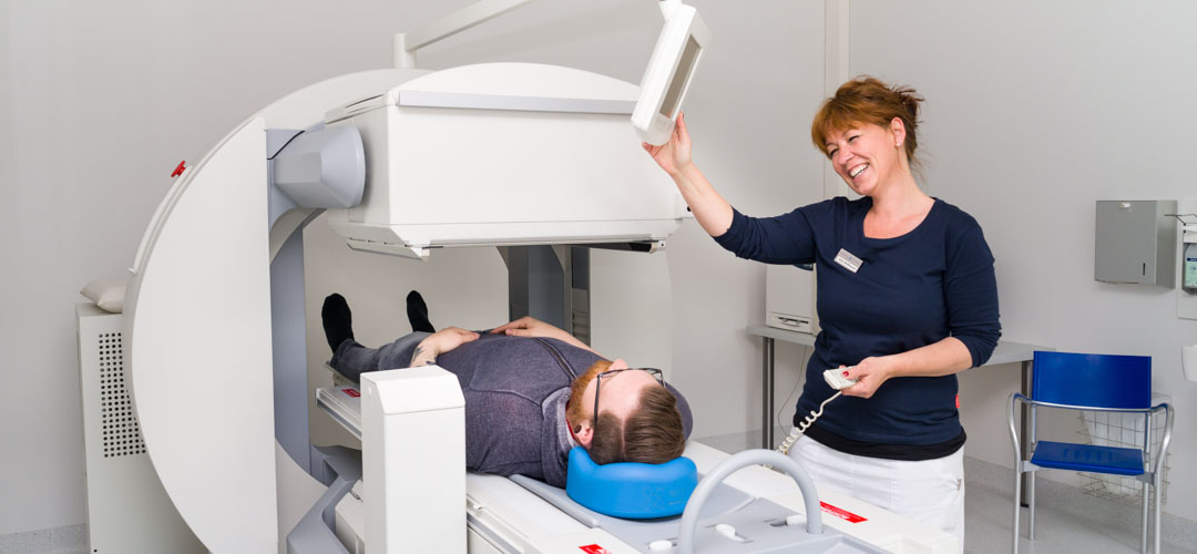 Sie sind von Ihrem Arzt zur Durchführung einer Computertomographie (CT) überwiesen worden. Das ist ein bildgebendes Verfahren, mit dem ein detaillierter Blick in Ihren Körper möglich ist. Die Untersuchung dauert wenige Minuten und ist schmerzfrei. Hier können Sie ergänzende Informationen und den für diese Behandlung nötigen Fragebogen herunterladen.